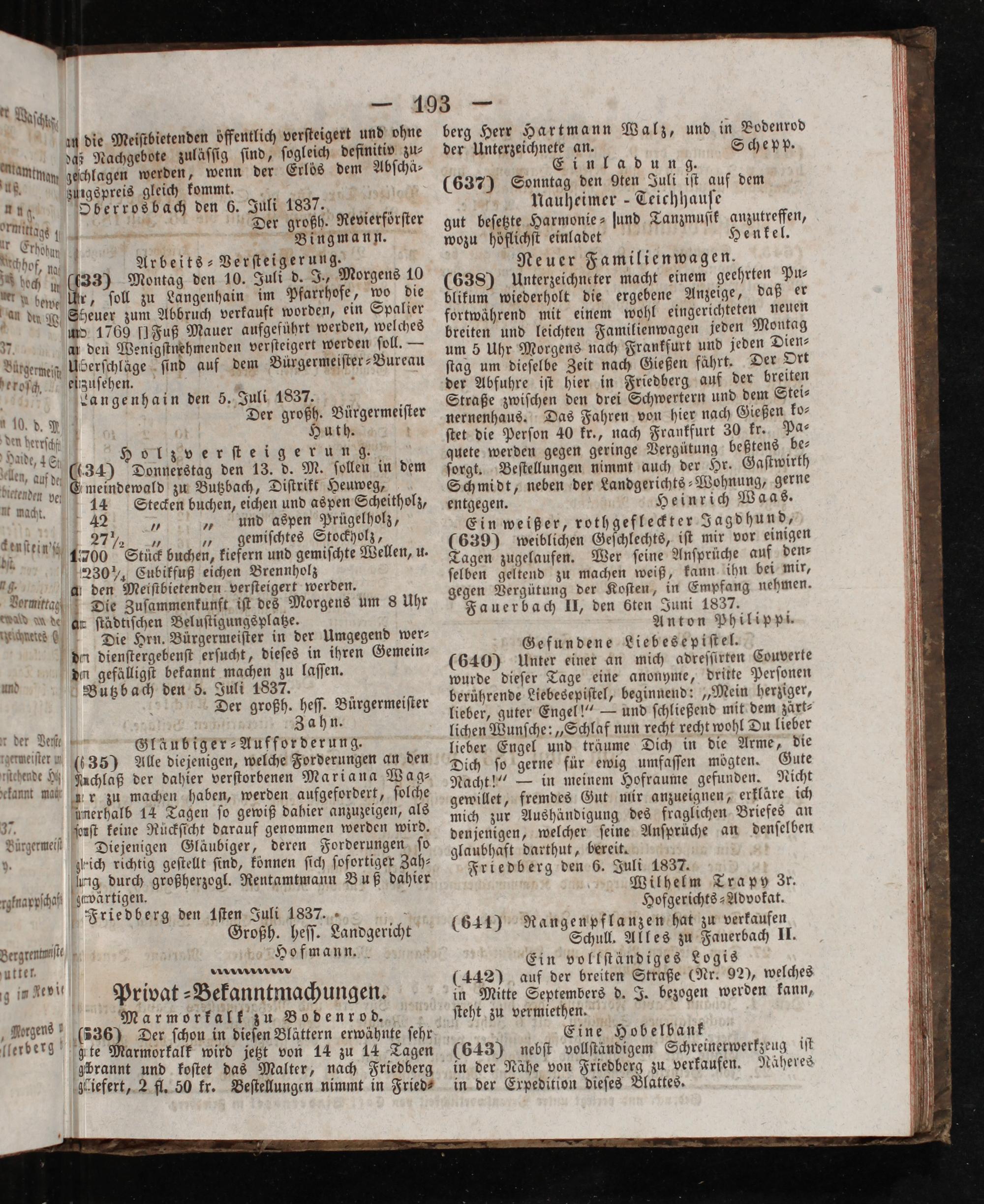 Friedberg den 1ſten Juli 1837. g Großh. heſſ. Landgericht Hofmann.