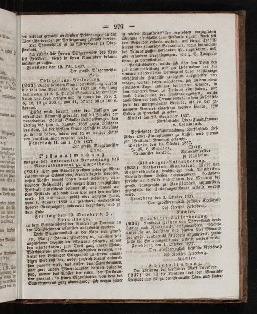 Kaſſel am 22. September 1837. Kurfurſtliche Ober⸗Finanzkammer v. Ba um bach.