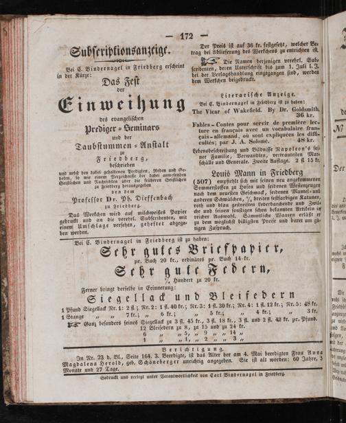 Monate und 27 Tage. f Gedruckt und verlegt unter Verantwortlichkeit von Carl Bindernagel in Friedberg.