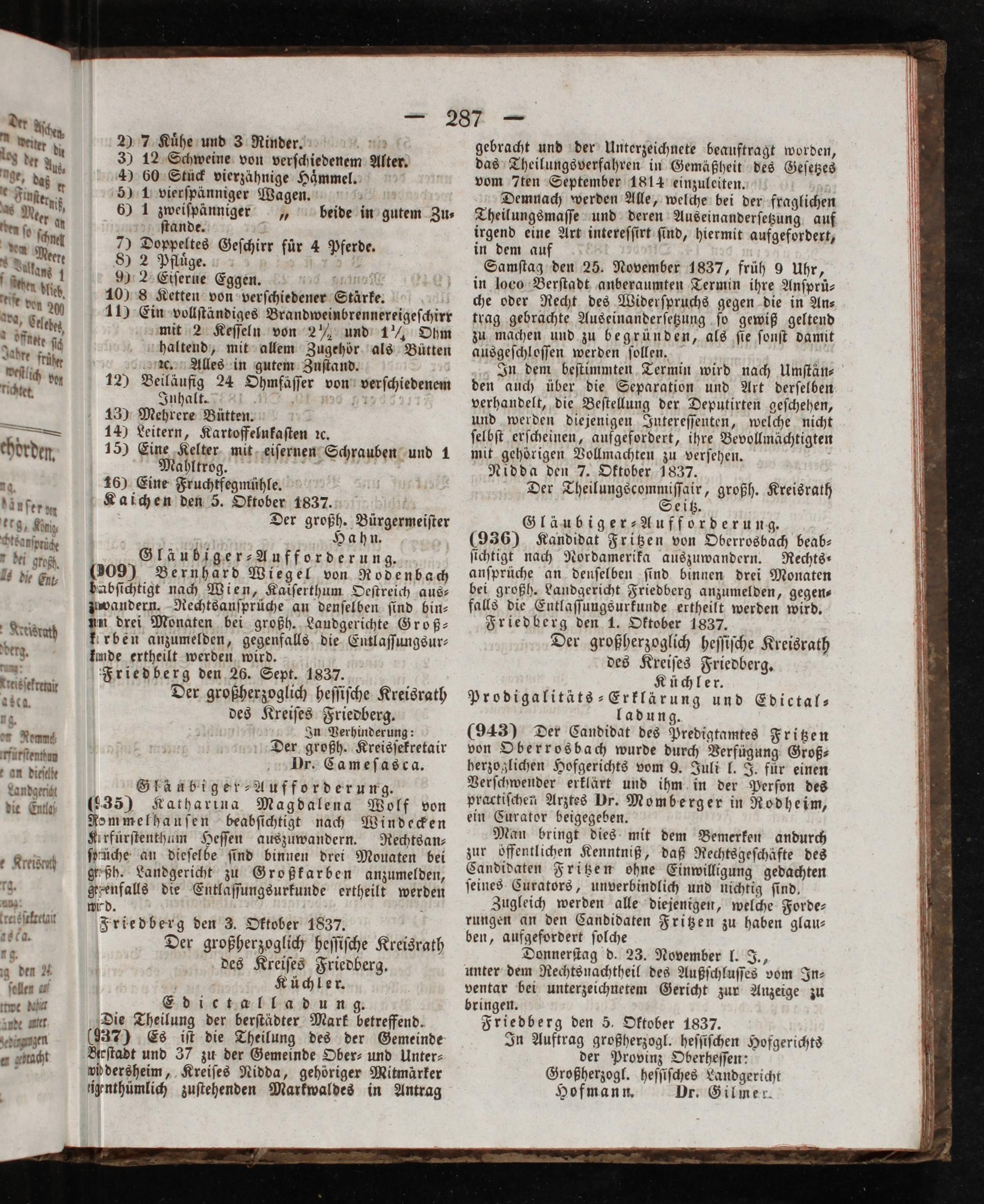 In Auftrag großherzogl. heſſiſchen Hofgerichts der Provinz Oberheſſen: Großherzogl. heſſiſches Landgericht Hofmann. Dr. Gilmer.