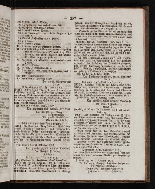 Friedberg den 3. Oktober 1837.