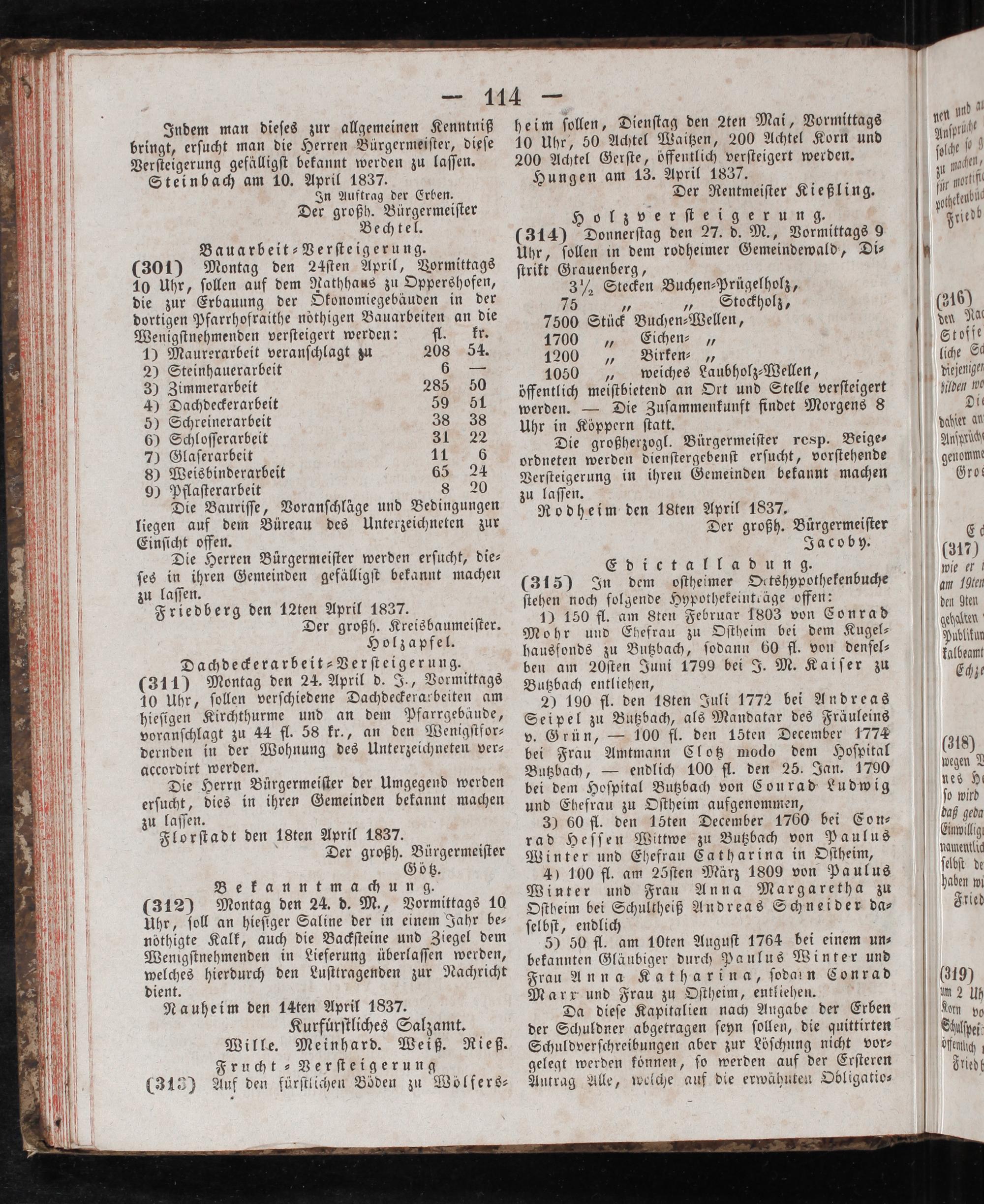 dient. Nauheim den 14ten April 1837. Kurfuͤrſtliches Salzamt. Wille. Meinhard. Weiß. Rieß. Frucht ⸗Verſteigerung (312) Auf den fürſtlichen Boden zu Wölfers⸗
