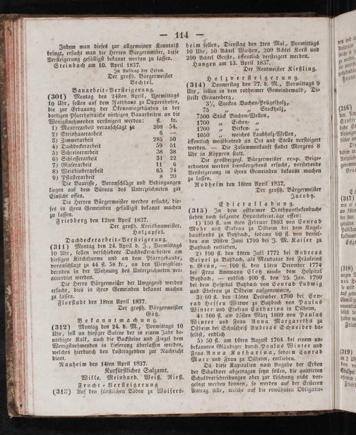 Steinbach am 10. April 1837. In Auftrag der Erben. Der großh. Bürgermeiſter
