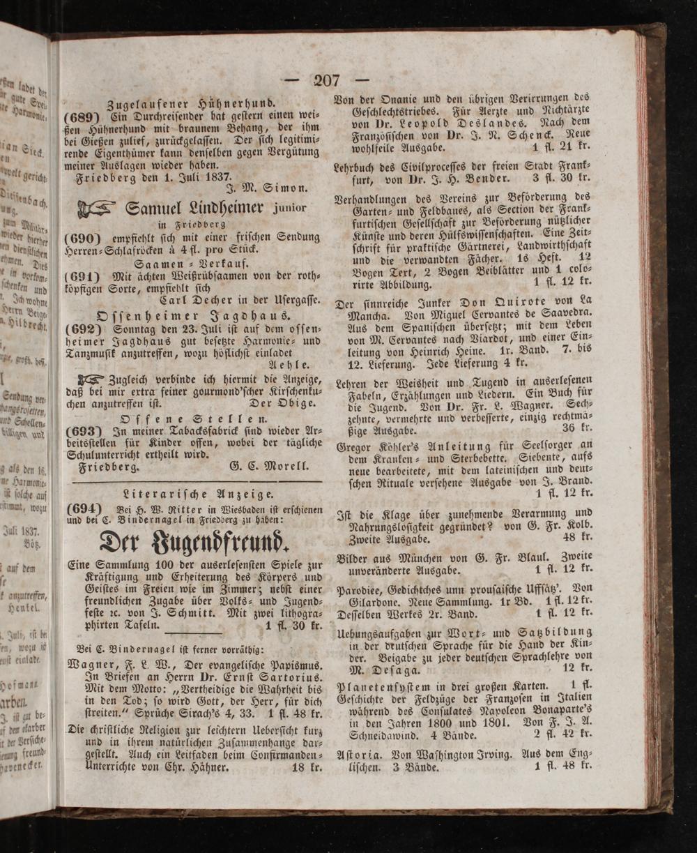 (694) Bei H. W. Ritter in Wiesbaden iſt erſchienen und bei C. Bindernagel in Friedberg zu haben: