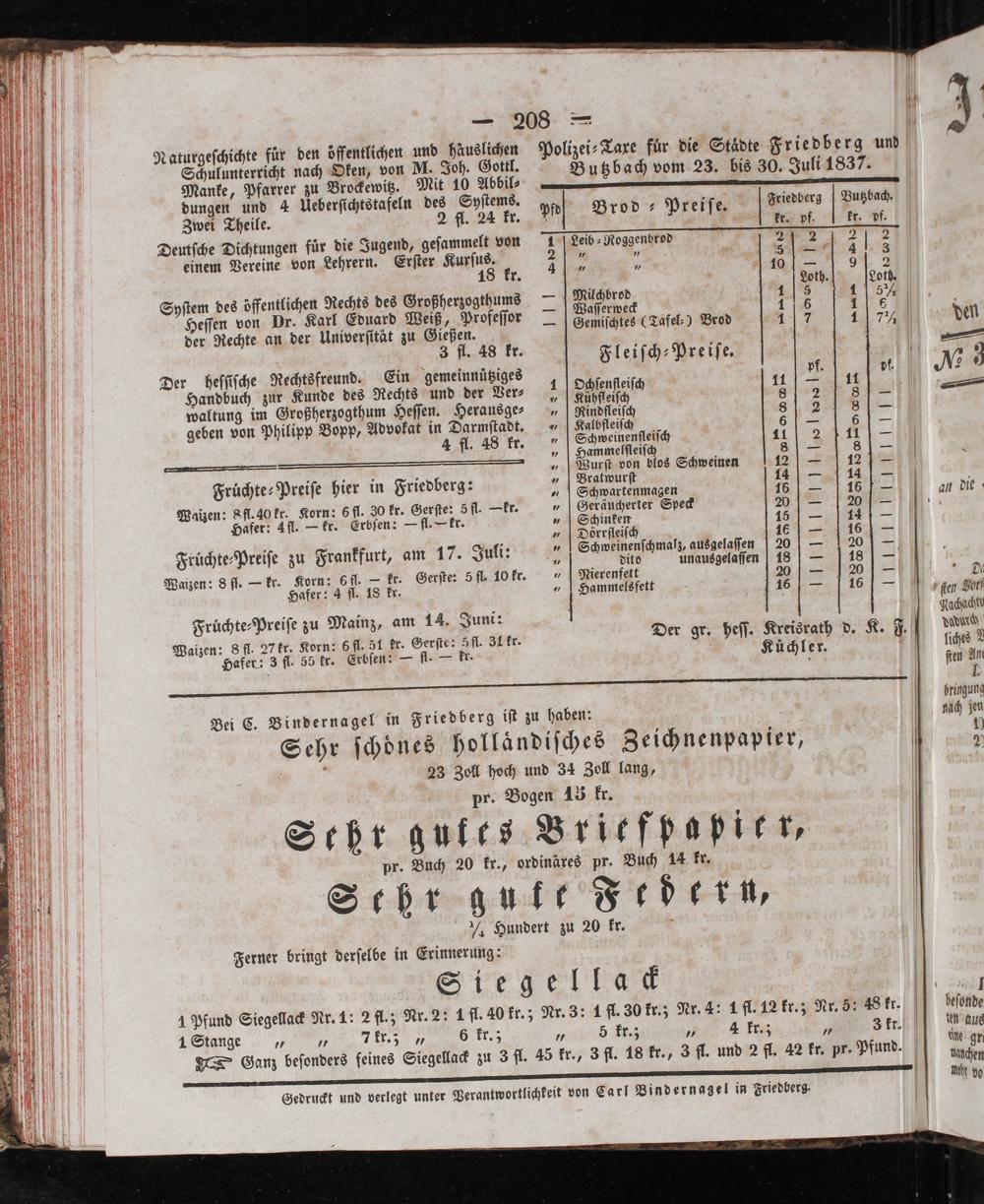 Gedruckt und verlegt unter Verantwortlichkeit von Carl Bind ernagel in Friedberg.