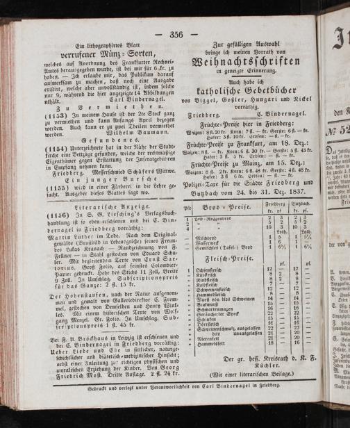 Gedruckt und verlegt unter Verantwortlichkeit von Carl Bind ernagel in Friedberg.