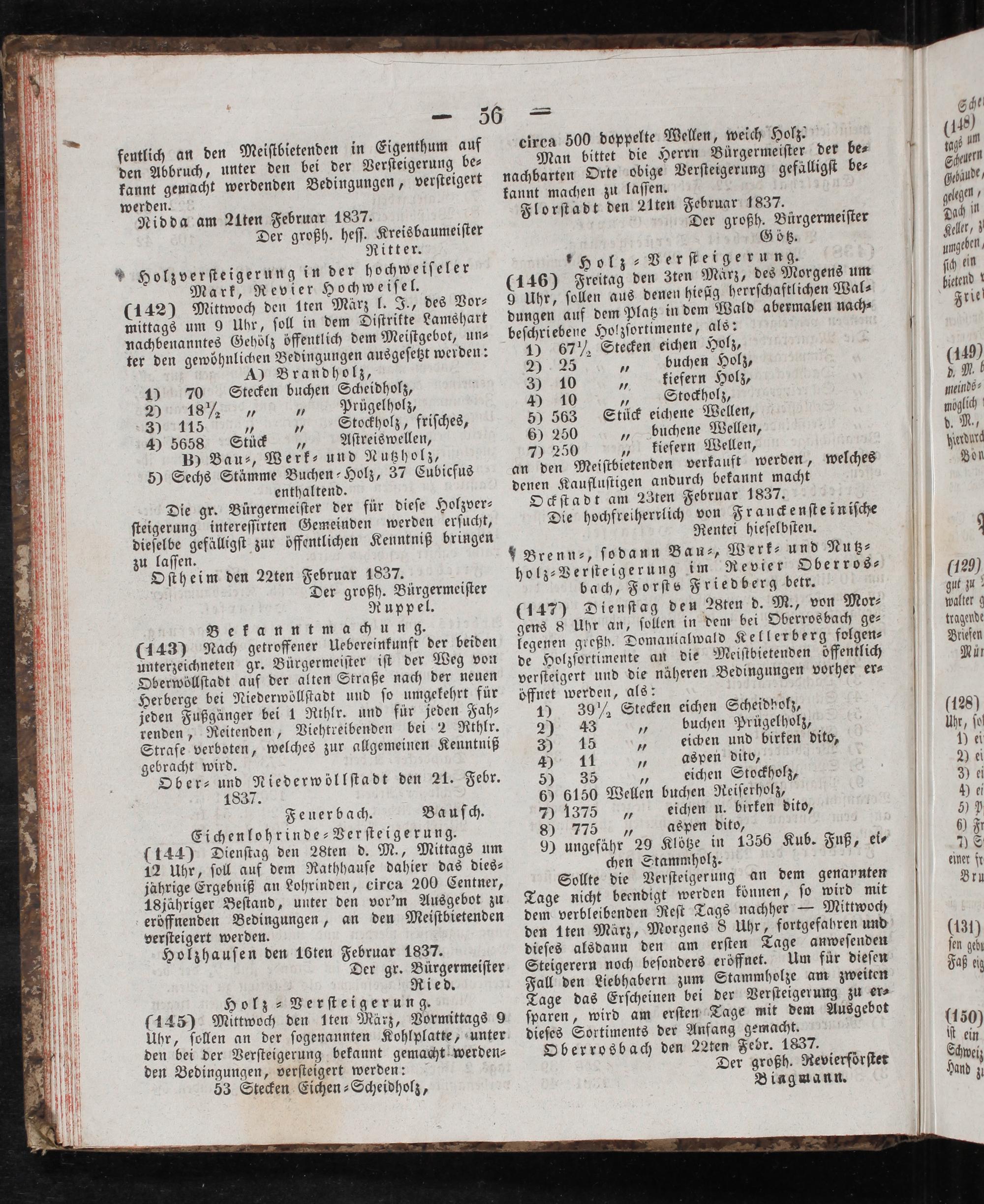 Oberrosbach den 22ten Febr. 1837. Der großh. Revierförſtet Bingmann.