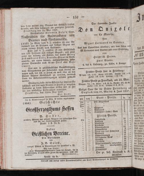 betreibe, Friedberg den 25. Mai 1837. Buͤrſtenbinder Valentin Volp's Wwe. Nachrichten fuͤr Auswanderer von