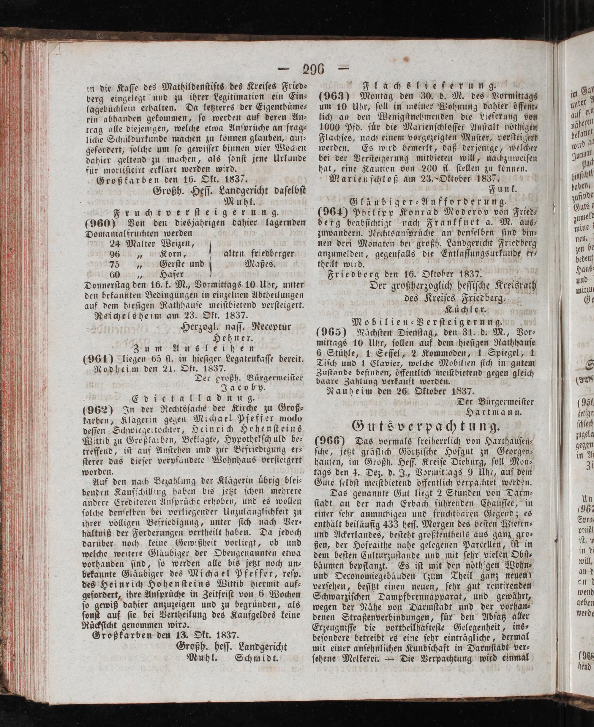 Friedberg den 16. Oktober 1837. N Der großherzoglich heſſiſche Kreisrath des Kreiſes Friedberg.