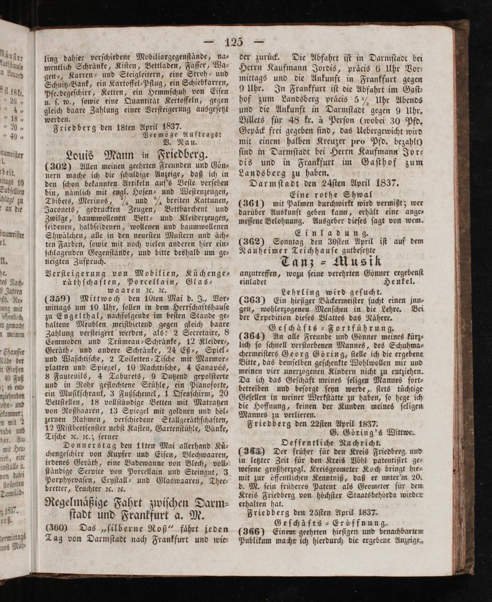 Friedberg den 25ſten April 1837.