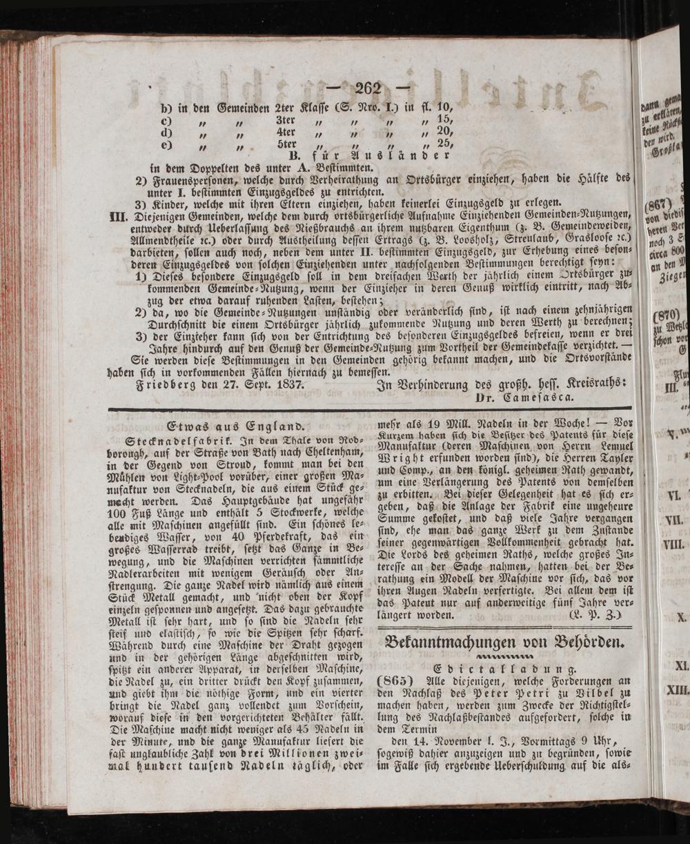 Friedberg den 27. Sept. 1837.