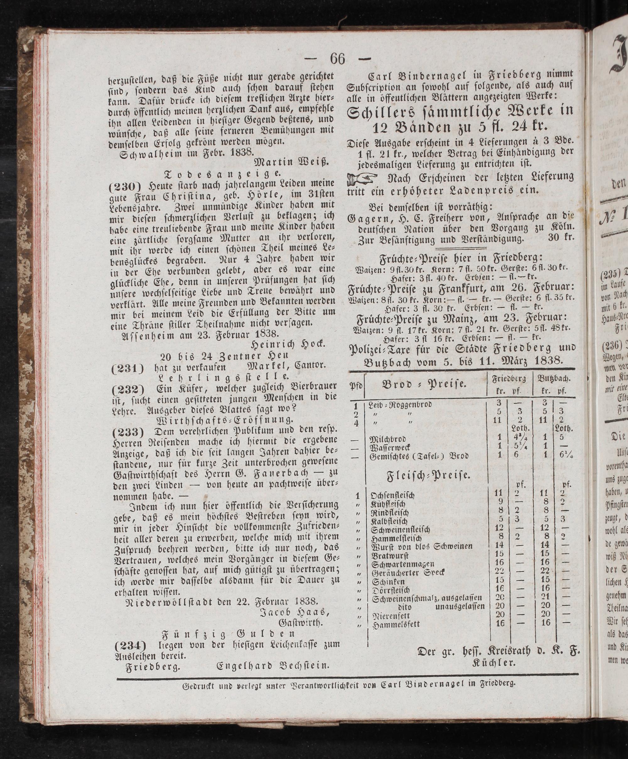 Gedruckt und verlegt unter Verantwortlichkeit von Carl Bindernagel in Friedberg.