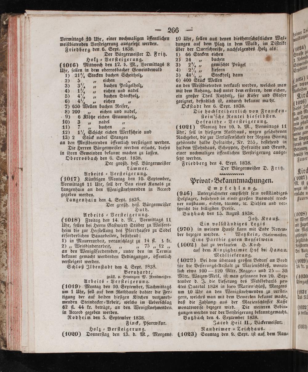 in Accord gegeben werden. Rodheim den 5. September 1838. Finck, Pfarrvikar. Holz ⸗Verſteigerung.
