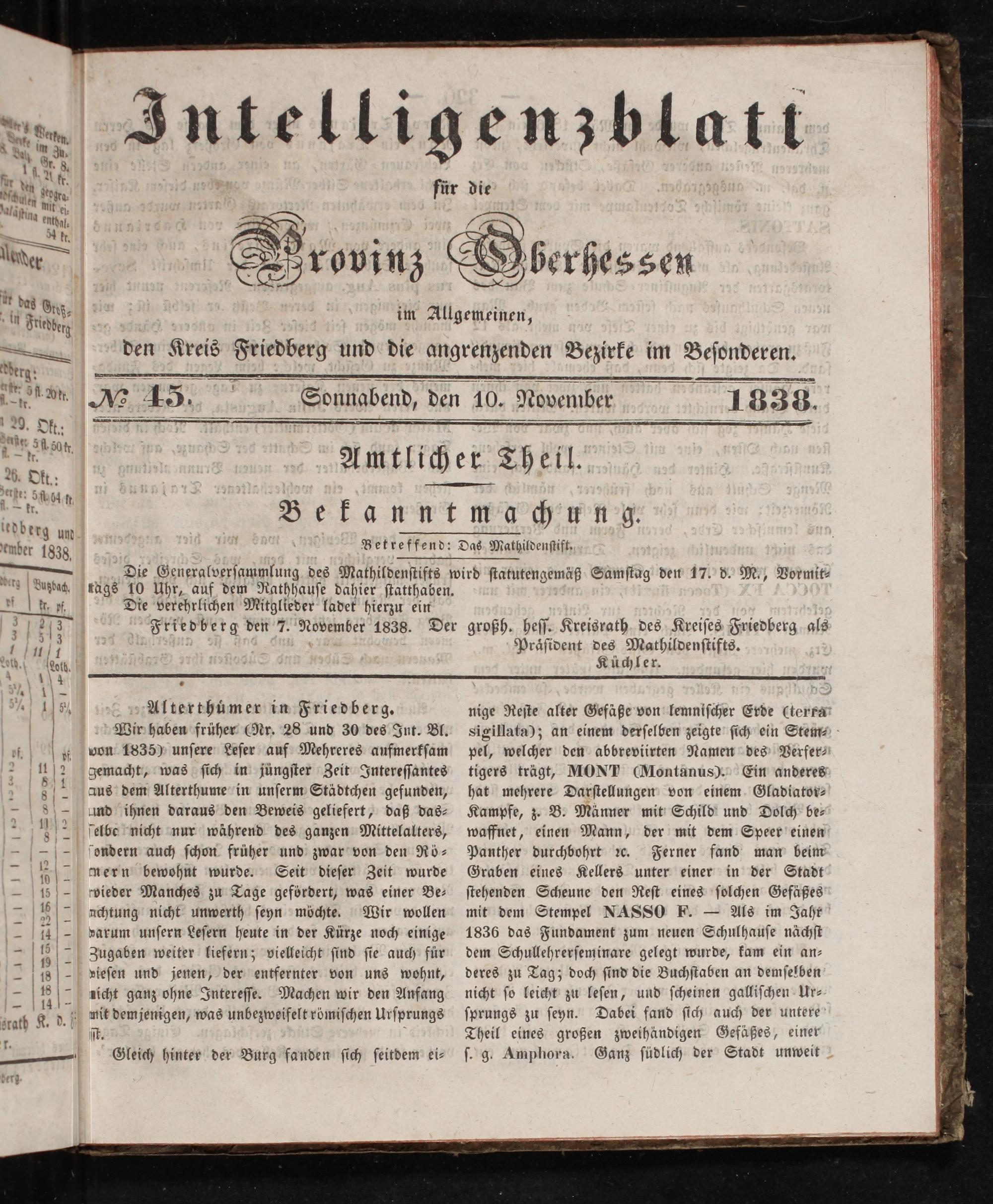 „November 1838. Der großh. heſſ. Kreisrath des Kreiſes Friedberg als