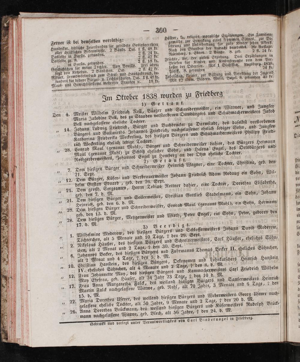 mann nachgelaſſene Wittwe, geb. Blech, alt 50 Jahre, 1 den 24. d. Fedruckt und verlegt unter Verantworflichkeit von Tari Binder nagel in Frie