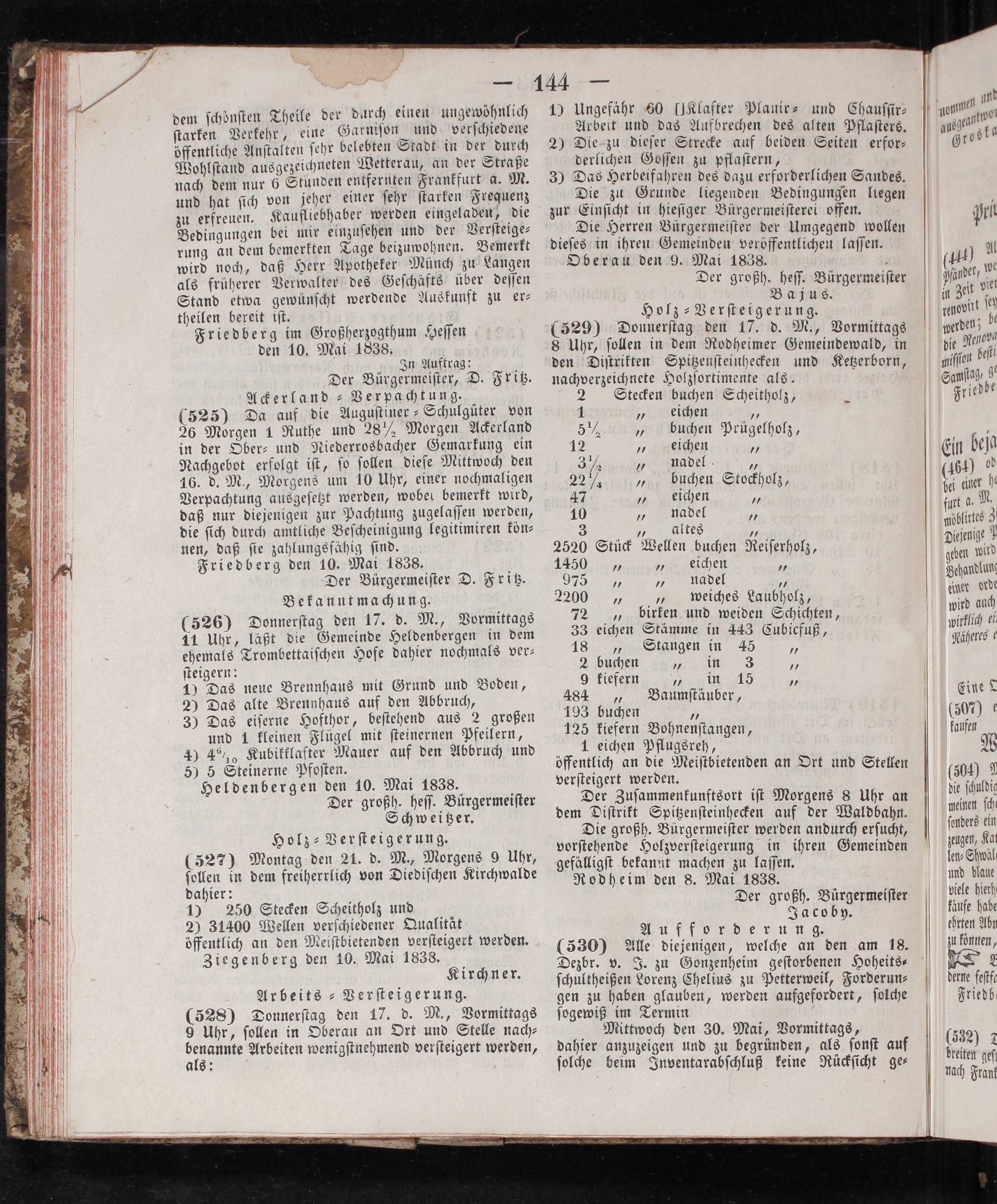 dieſes in ihren Gemeinden veröffentlichen laſſen. Oberau den 9. Mai 1838..