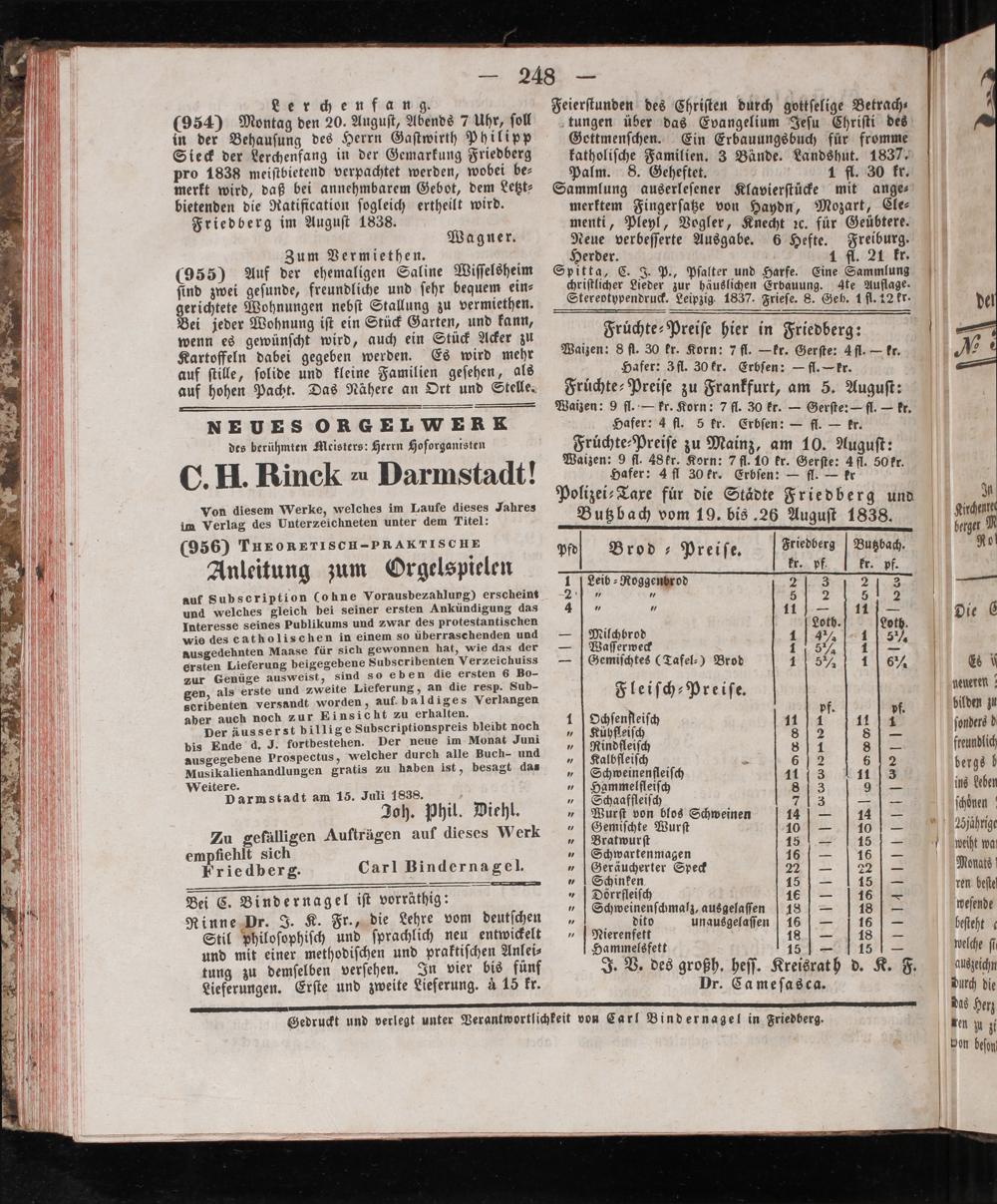 Gedruckt und verlegt unter Verantwortlichkeit von Carl Bindernagel in Friedberg.
