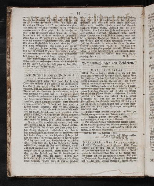 Der Kirchengeſang zu Petterweil. (Auszug eines Schreibens.) Gelegenheitlich einer Reiſe durch, die Provinz Oberheſſen berührte ich am Sonntag vor Weihnachten den Ort Petter weil. Der Wirth, bei dem ich einkehrte, war ein ſchlichter aber ſo gefälliger junger Mann, und ſein Benehmen ſo anſprechend, daß ich