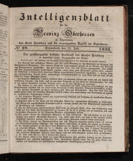 Betreffend: Die Anlegung von Brennmaterialien⸗Magazinen in den Gemeinden des Kreiſes Friedberg.
