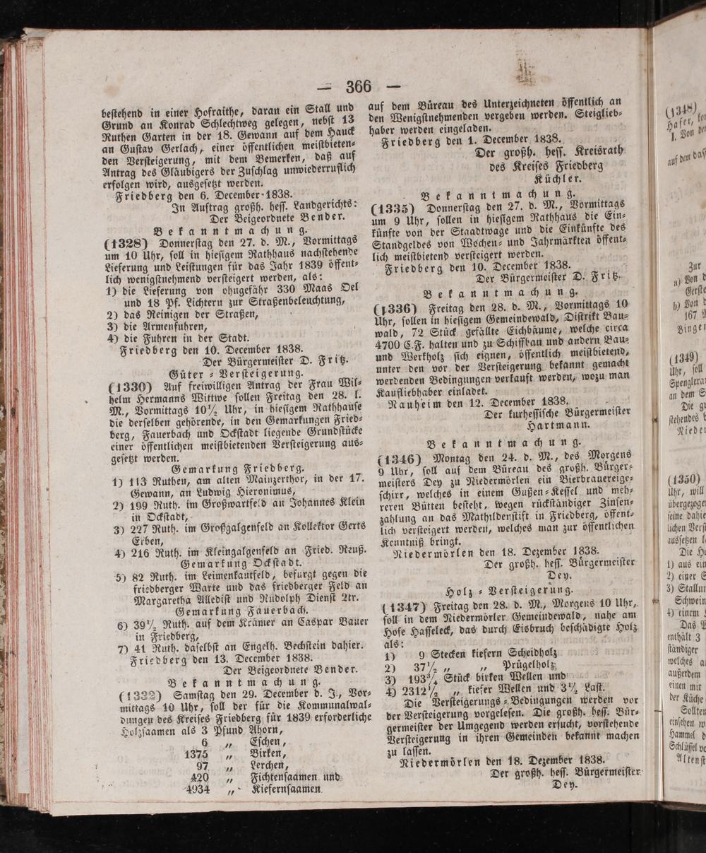 Friedberg den 6. December 1838. In Auftrag großh. heſſ. Landgerichts: Der Beigeordnete Bender. Bekanntmachung.
