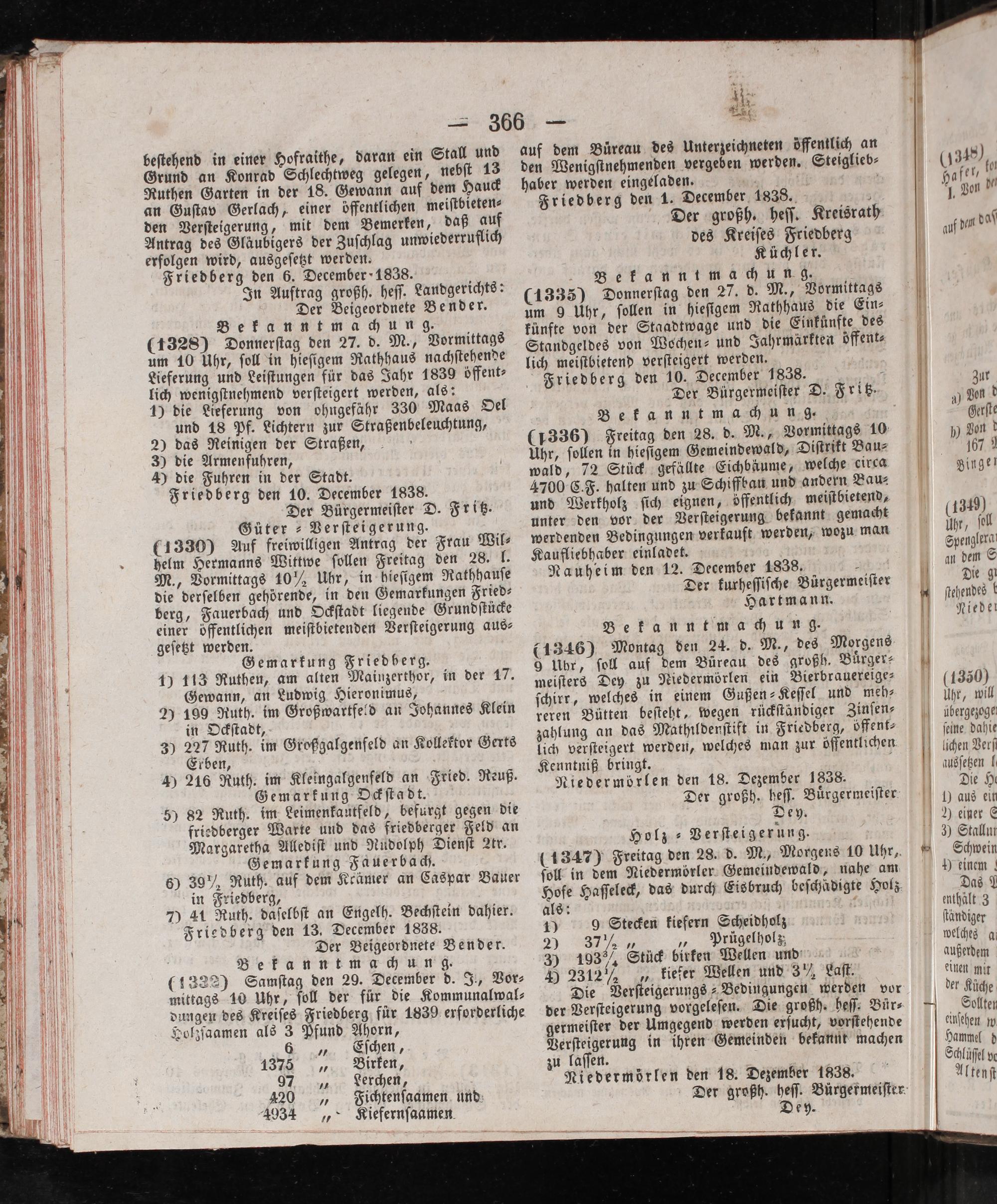 Kaufliebhaber einladet. Nauheim den 12. December 1838. 80 Der kurheſſiſche Bürgermeiſter Hartmann.