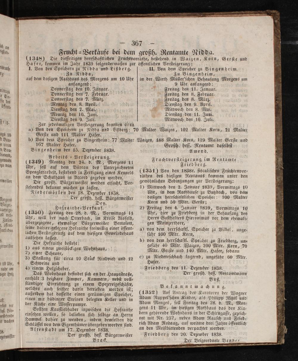 Friedberg den 11. Dezember 1838. Der großh. heſſ. Rentamtmann Buß. Bekanntmachung.