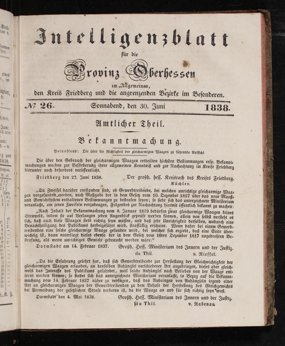 Friedberg den 27. Juni 1838.„Der großh. heſſ. Kreisrath des Kreiſes Friedberg.