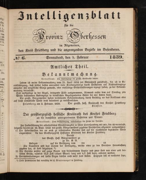 ken. Uk. für die . 15 kr. J dem 9 0 und 0 n ae ro vin erlſessen 7 kr. 8 im Allgemeinen, Ok. den Kreis Friedberg und die angrenzenden Bezirke im Beſonderen. MG. Sonnabend, den 9. Februar a 1839. an.: N EN 2 kr.*„ Amtlicher Theil. n.: Mkt. Bekanntmachung. und Betreffend: Die Audienztage bei großh. Kreisrathe dahier. 39. Indem ich meine Bekanntmachung vom 22. April 1834 ins Gedächtniß zurückrufe, bin ich in Be— ge rückſichtigung, daß ſeither deſſen unerachtet viele Kreisangehörige durch Erſcheinen auf Nichtaudienztage 1 entweder ſich vergebliche Gänge gemacht, oder vielfältige Geſchäftsſtörungen erzeugt haben, zu der Bekannt⸗ A machung veranlaßt: FE Daß inskünftige in der Regel, dringende Fälle ausgenommen, Niemand außer dem auf Dienſtag jede * Woche beſtimmten Audienztage in dienſtlichen Angelegenheiten Gehör bei mir finden kann. An Die großh. Bürgermeiſter haben vorſtehende Bekanntmachung durch Anſchlag an das Rathhaus oder SN auf ſonſt ortsübliche Weiſe noch beſonders zu veröffentlichen. 5 Friedberg am 3. Februar. 1839. Der großh. heſſ. Kreisrath des Kreiſes Friedberg: * Kuͤchler. A 3* Der großherzoglich heſſiſche Kreisrath des Kreiſes Friedberg 12 an die demſelben untergeordneten Behoͤrden und Diener: 2 Betreffend: Den Geſchäftsgeng, insbeſondere die Form der Berichte. 0 Zur Herbeiführung der erforderlichen Gleichförmigkeit in Ihrer Correſpondenz mit mir, bin ich veranlaßt, — folgende bereits am 10. Sept. 1833 den großh. Bürgermeiſtern gegebene Vorſchriften allgemein auszunehmen: 7 1) Die Ueberſchriften der an mich zu erſtattenden Berichte ſind auf die nachſtehend bezeichnete Weiſe 2 einzurichten: An den Großherzoglich Heſſiſchen Kreisrath des Kreiſes Friedberg 1 Bericht 58 des Großh. Heſſ. Bürgermeiſters zu I zu Nr. K. R. 12 Anlagen auf die Verfügung vom ten 18 2 Die Nummern und das Datum der Verfügung, welche etwa zu den Berichten Veranlaſſung 25 gegeben hat, iſt ſtets beizuſetzen.“) A 20 Die Berichte müſſen auf ganze Bogen von beſchnittenem Papier und zwar ſtets von einer und der— K. F. ſelben Größe, nämlich 13,3 Zoll(neues Maas) lang und 8,2 Zoll breit, erſtattet werden. g 3) Berichtserſtattungen auf halbe Bogen dürfen nicht mehr ſtatt finden. Dagegen ſoll es verſtattet ſeyn,
