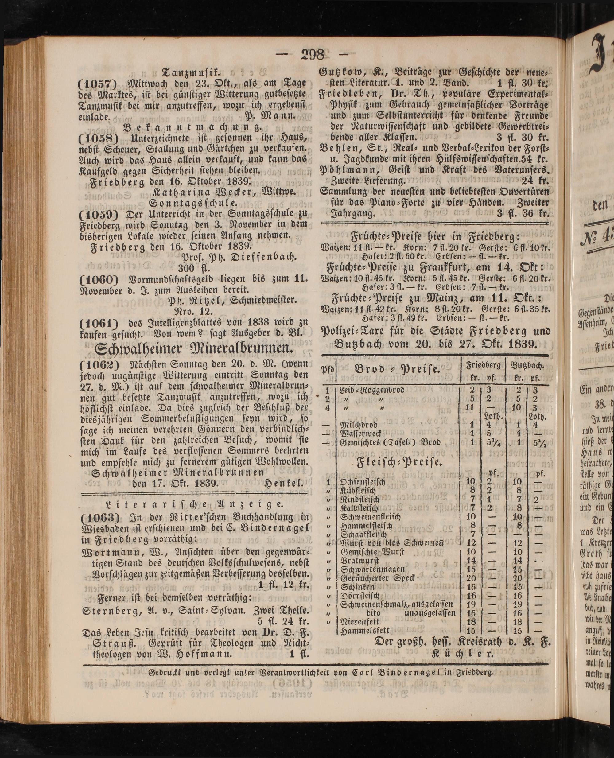 Gedruckt und verlegt unter Verantwortlichkeit von Carl Bind ernagel in Friedberg.