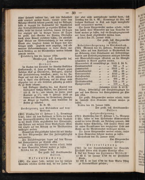 Friedberg den 14. Januar 1839. Großherzogl. heſſ. Landgericht daſ.