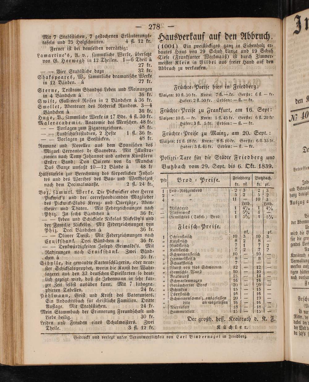 Gedruckt und verlegt unter Verantwortlichkeit von Carl Bind er nagel in Friedberg.