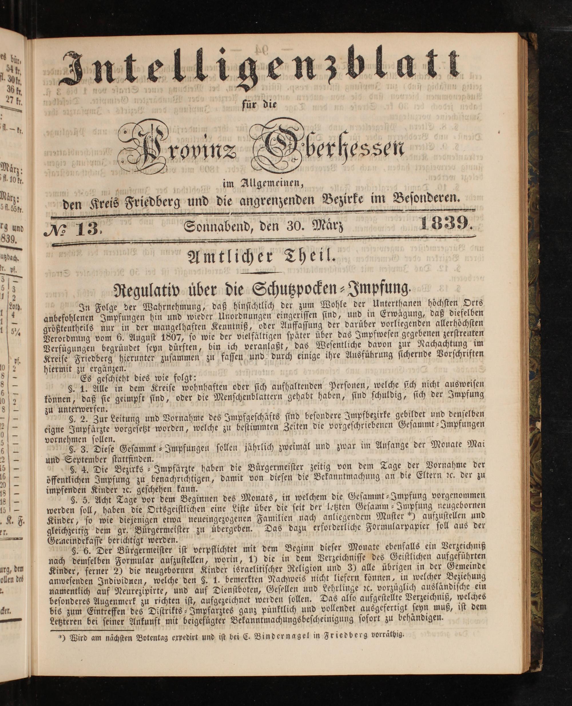 * 13. Sonnabend, den 30. Maͤrz Amtlicher Theil. Regulativ uͤber die Schutzpocken⸗Impfung.