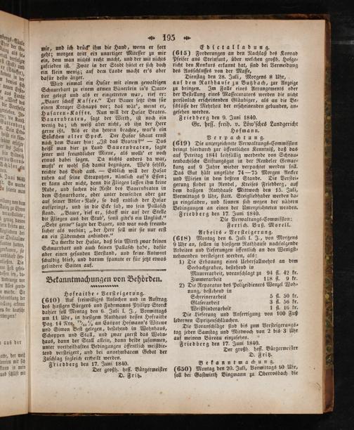 Friedberg den 9. Juni 1840. Gr. heſſ. freih. v. Löw'ſches Landgericht