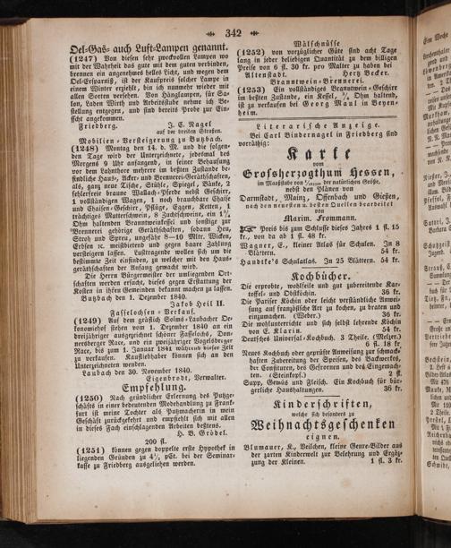 Empfehlung. (1250) Nach gründlicher Erlernung des Putzge⸗ ſchäfts in einer bedeutenden Modehandlung zu Frank⸗ furt iſt meine Tochter als Putzmacherin in mein Geſchäft zurückgekehrt und empfiehlt ſich mit allen in dieſes Fach einſchlagenden Arbeiten beßtens. H. B. Grödel. 200 fl