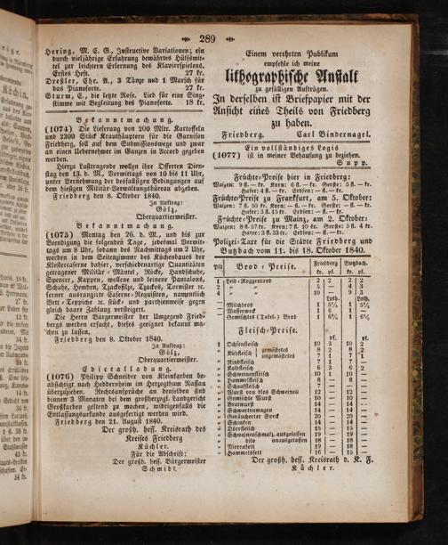 (1077) iſt in meiner Behauſung zu beziehen. Su p p. Fruͤchte-Preiſe hier in Friedberg: