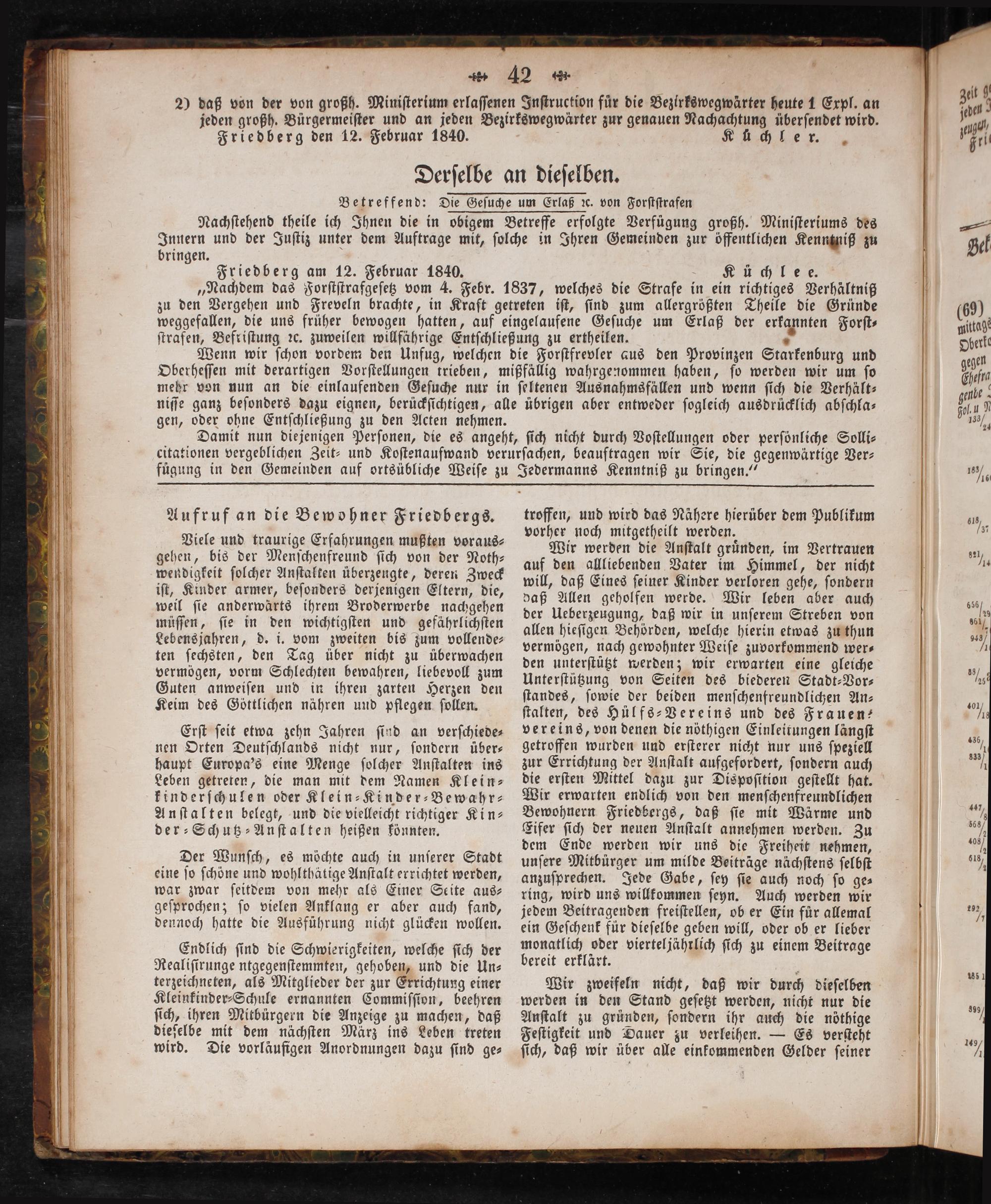 bringen. Friedberg am 12. Februar 1840.