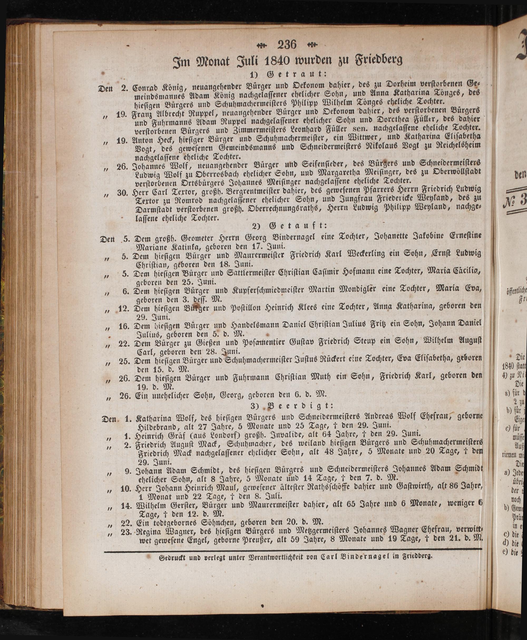 Im Monat Juli 1840 wurden zu Friedberg ö 1) Getraut: