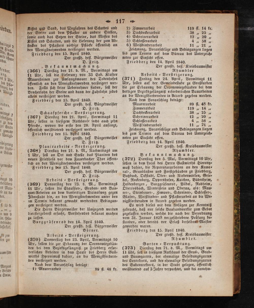 Friedberg den 14. April 1840. f Der großh. heſſ. Kreisbaumeiſter
