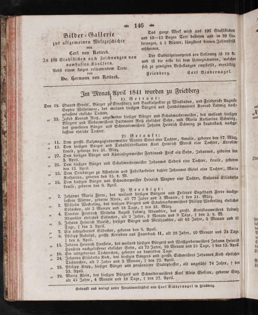 Im Monat April 1841 wurden zu Friedberg