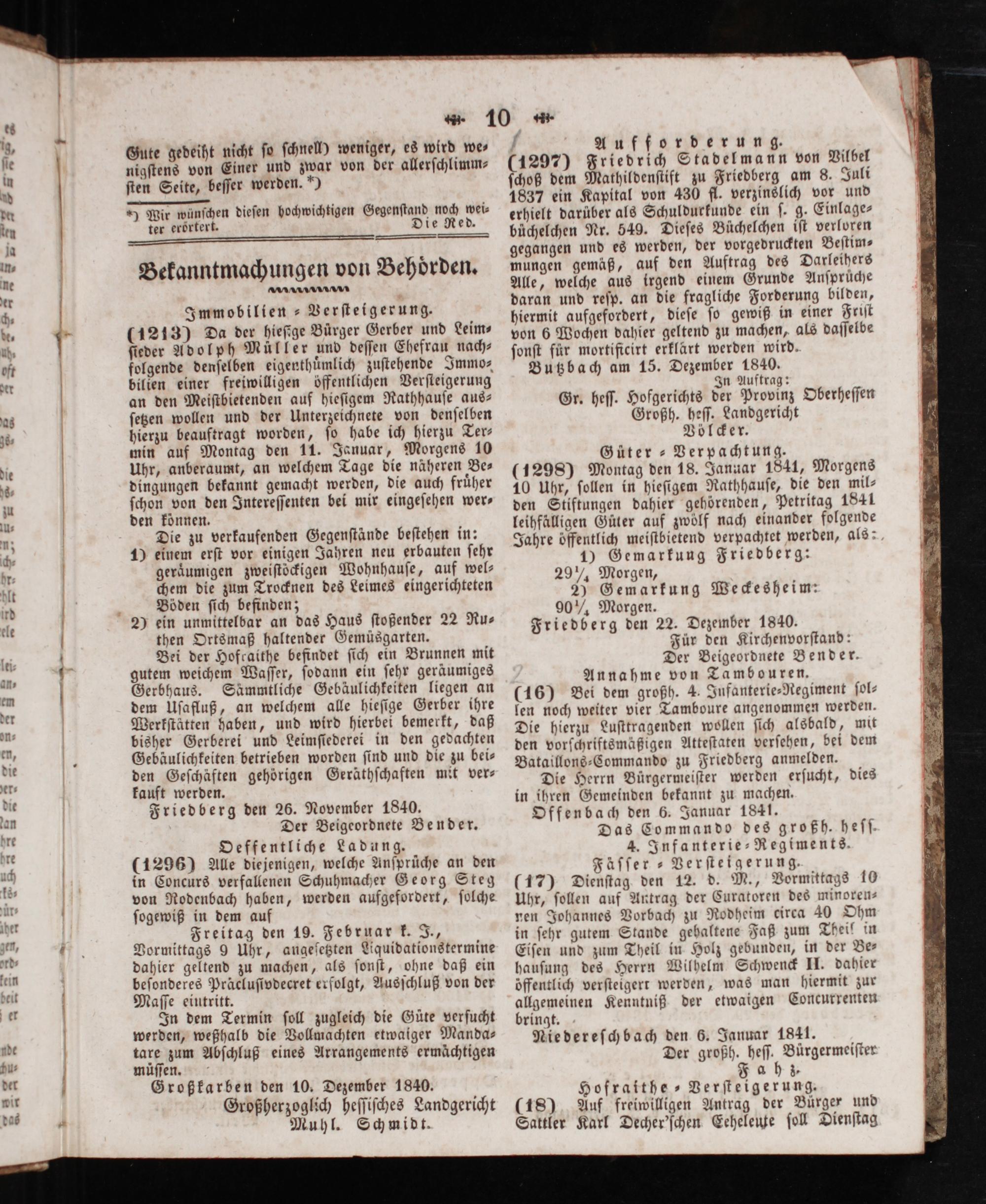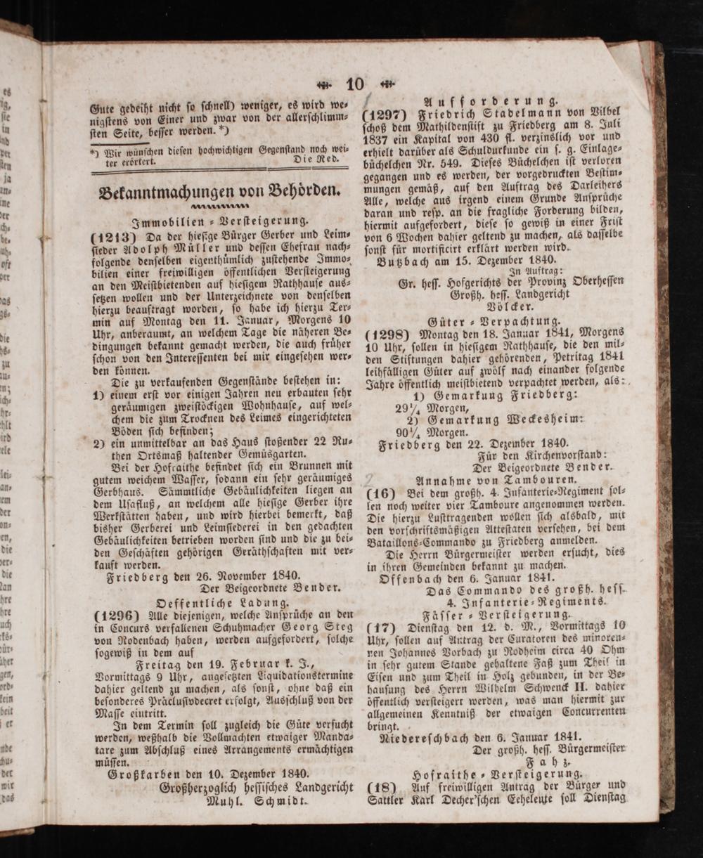 Großkarben den 10. Dezember 1840. Großherzoglich heſſiſches Landgericht Muhl. Schmidt.