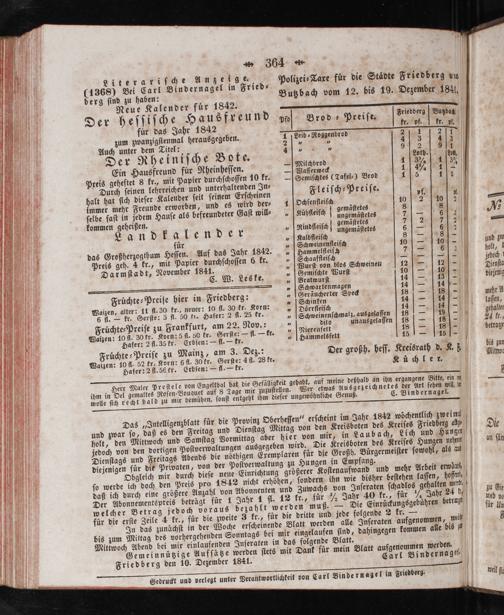 (1368) Bei Carl Bindernagel in Fried⸗ f 25 Butzbach vom 12. bis 19. Dezember 184.