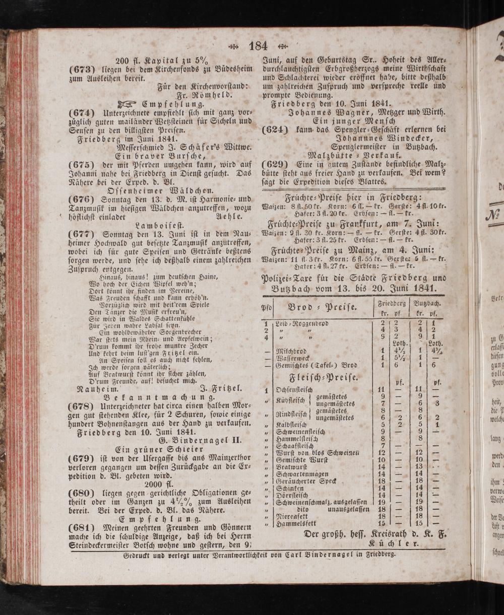 Gedruckt und verlegt unter Verantwortlichkeit von Carl Bindernagel in Friedberg.