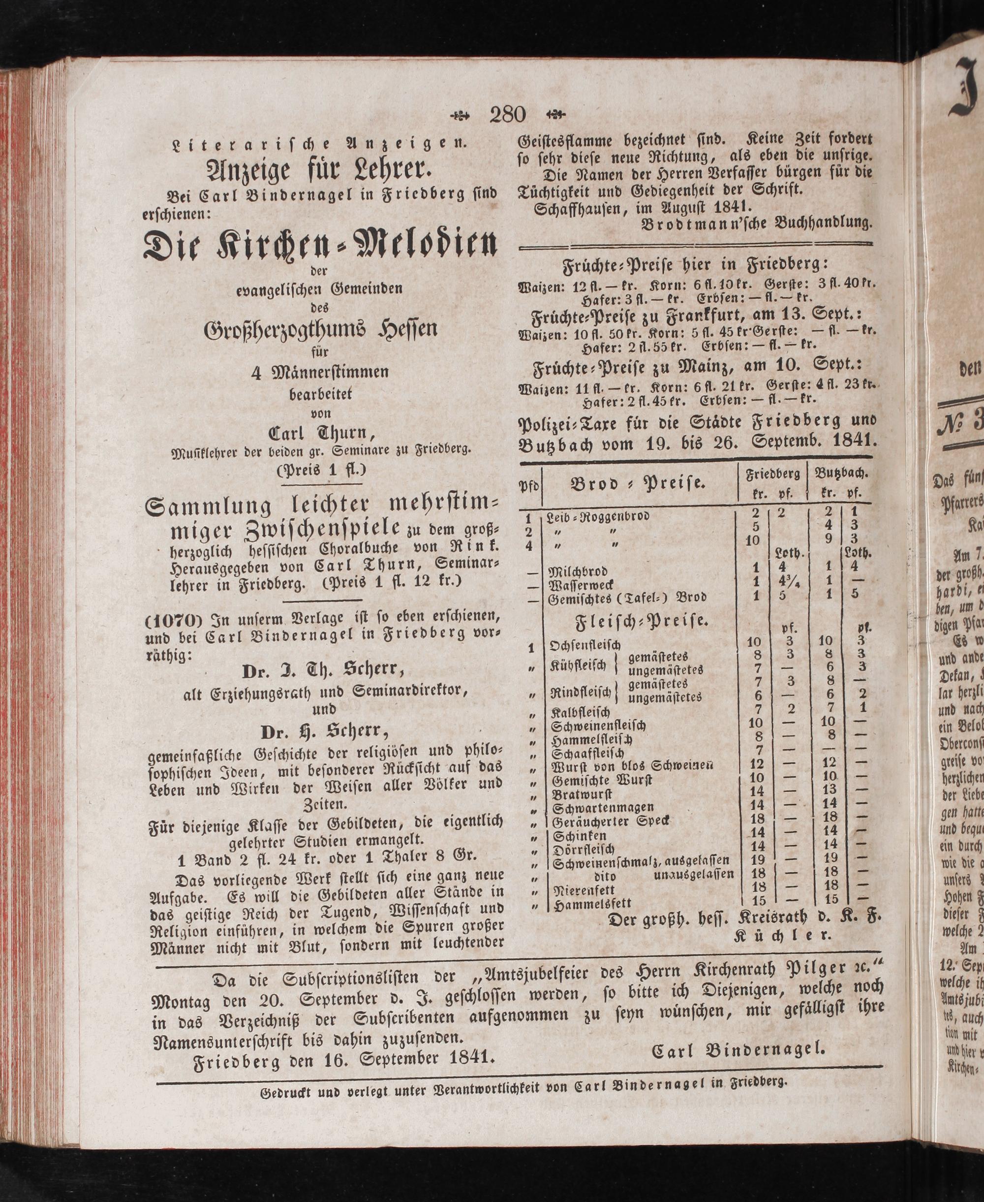 Gedruckt und verlegt unter Verantwortlichkeit von Carl Bindernagel in Friedberg.