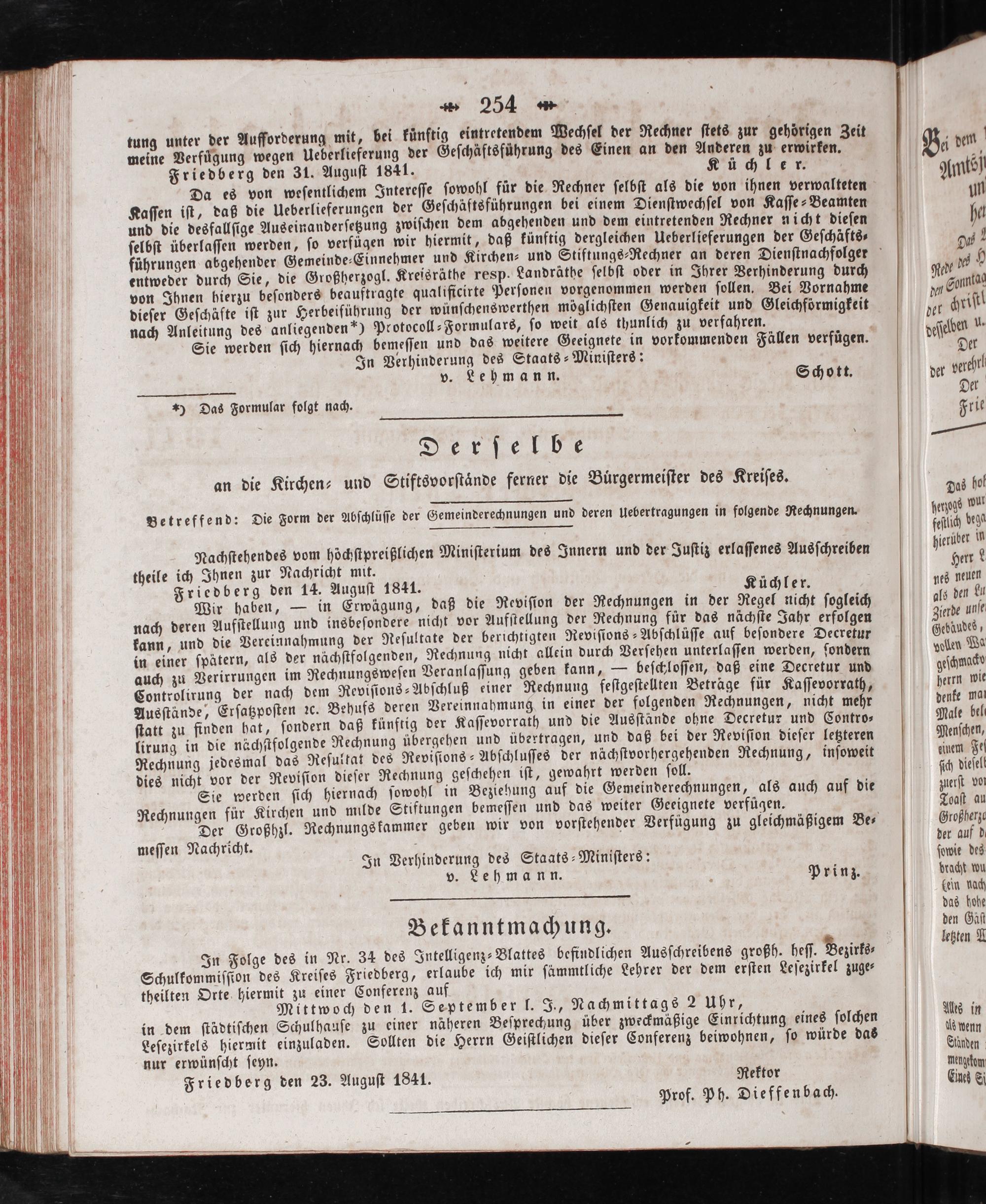 Mittwoch den 1. September l. J., Nachmittags uh, in dem ſtädtiſchen Schulhauſe zu einer näheren Beſprechung über zweckmäßige Einrichtung eines ſolchen Leſezirkels hiermit einzuladen. Sollten die Herrn Geiſtlichen dieſer Conferenz beiwohnen, ſo würde das nur erwünſcht ſeyn. Friedberg den 23. Auguſt 1841. Rektor Prof. Ph. Dieffenbach.
