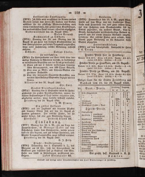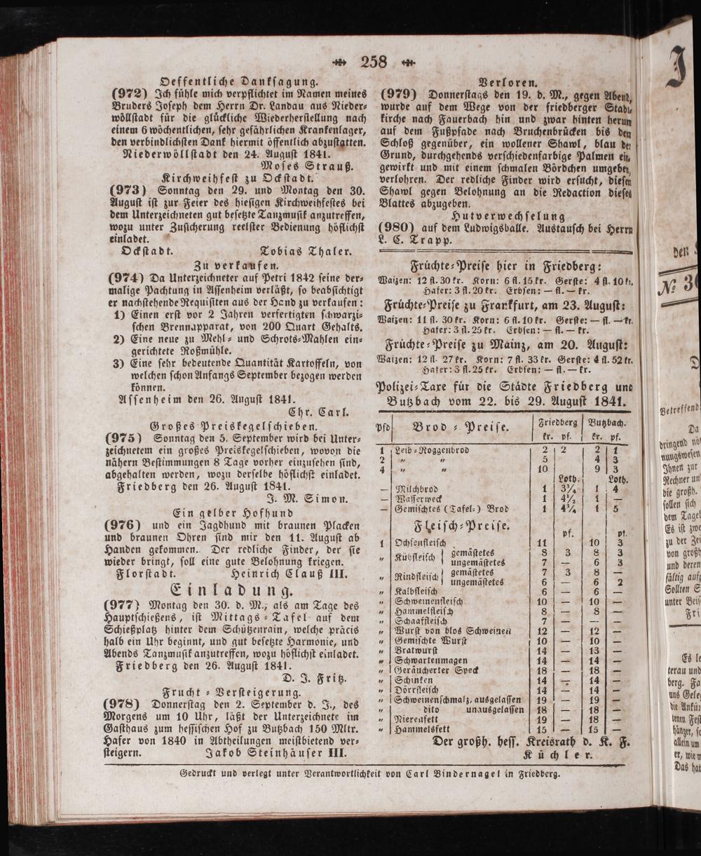 Gedruckt und verlegt unter Verantwortlichkeit von Carl Bindernagel in Friedberg.