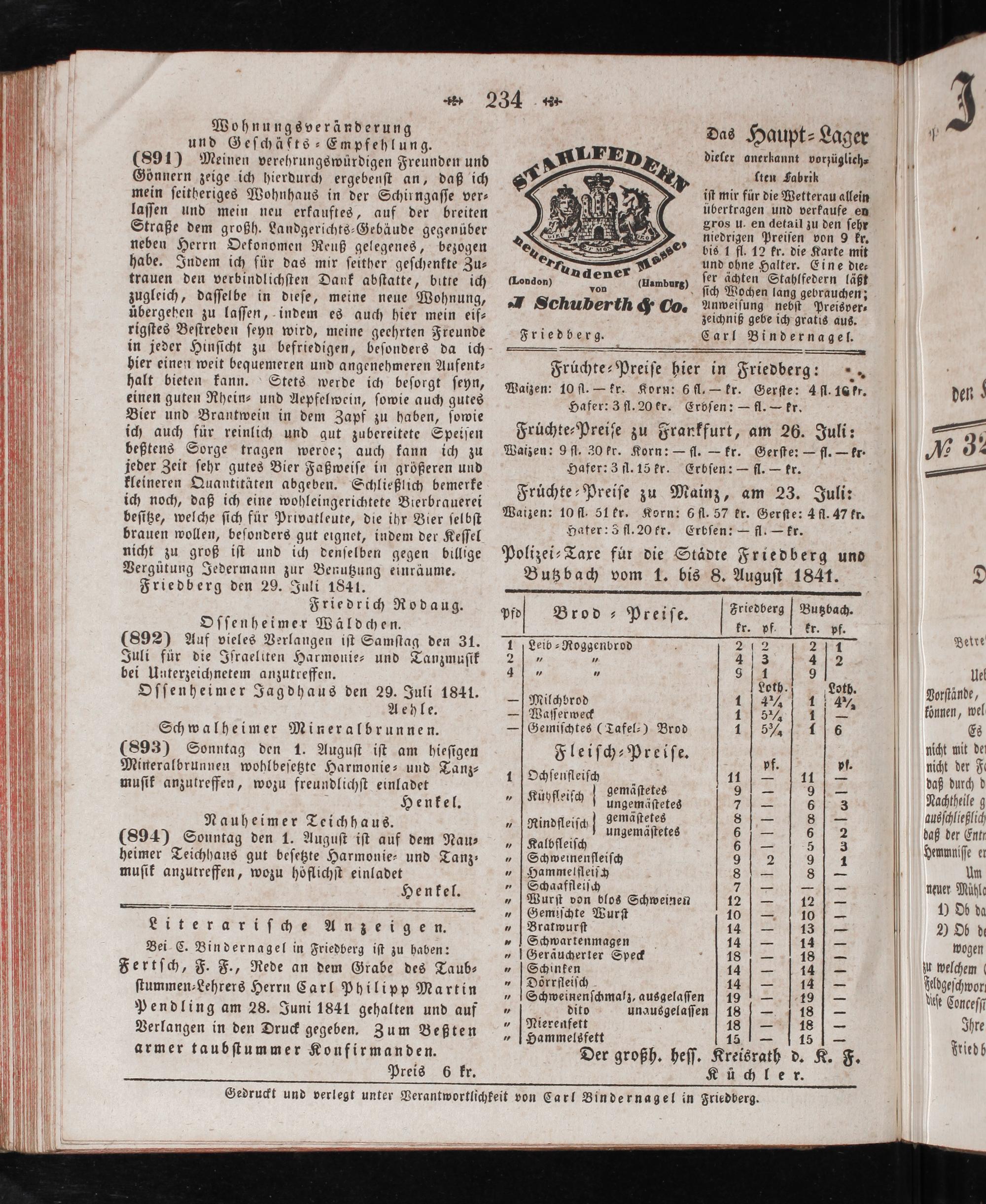 Gedruckt und verlegt unter Verantwortlichkeit von Carl Bindernagel in Friedberg.