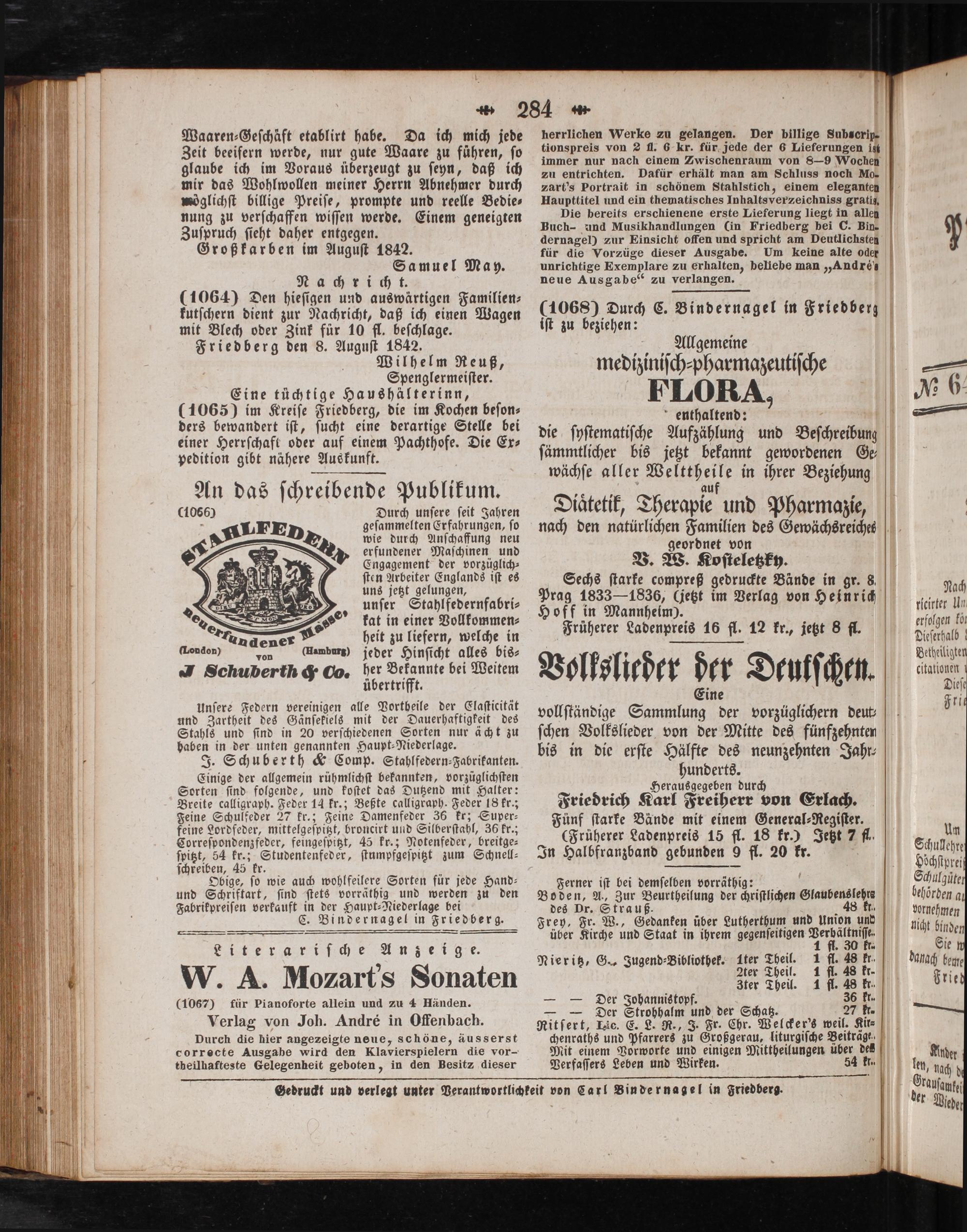 Die bereits erschienene erste Lieferung liegt in allen Buch- und Musikhandlungen(in Friedberg bei C. Bin. dernagel) zur Einsicht offen und spricht am Deutlichsten