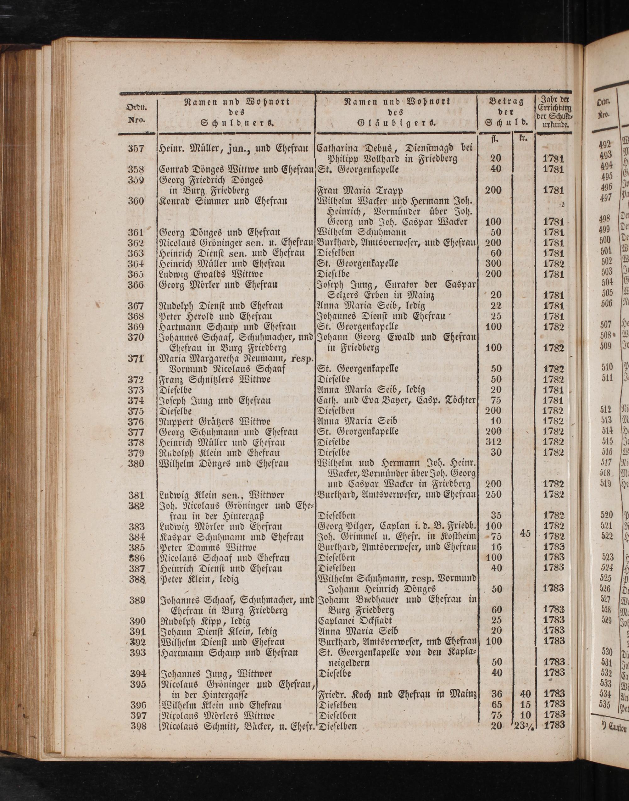 Selzers Erben in Mainz Anna Maria Seib, ledig Johannes Dienſt und Ehefrau St. Georgenkapelle Johann Georg Ewald und Ehefrau in Friedberg