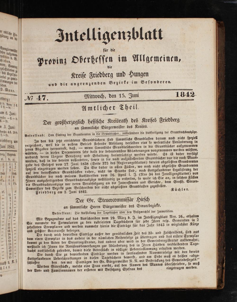 Der großherzoglich heſſiſche Kreisrath des Kreiſes Friedberg an ſaͤmmtliche Bürgermeiſter des Kreiſes. Betreffend: Den Eintrag der Grundrenten in die Grundbüͤcher, insbeſondere die Ausfertigung der Grundbuchsauszuͤge.