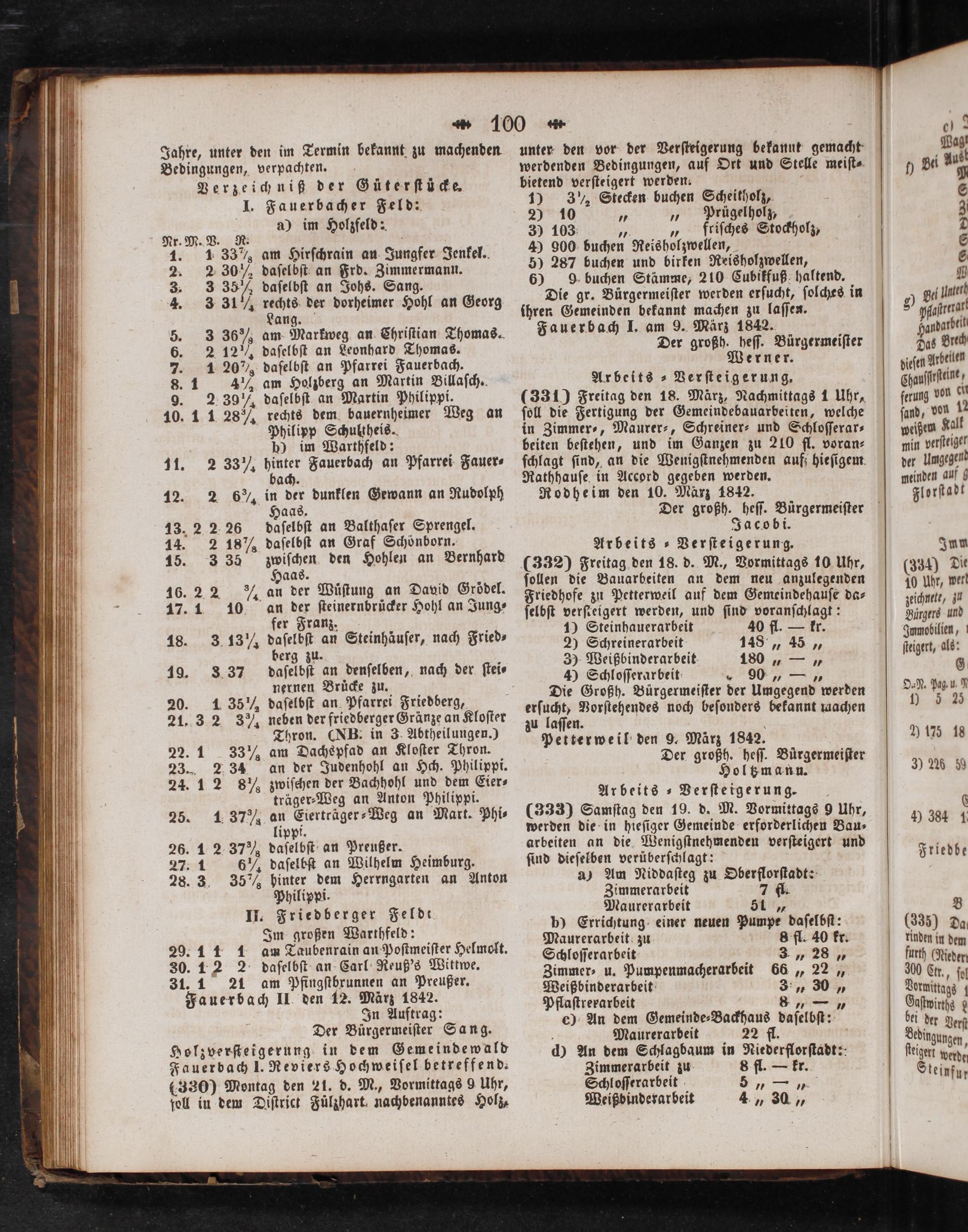 Petterweil den 9. März 1842. Der großh. heſſ. Bürgermeiſter Holtzmann. Arbeits-Verſteigerung.